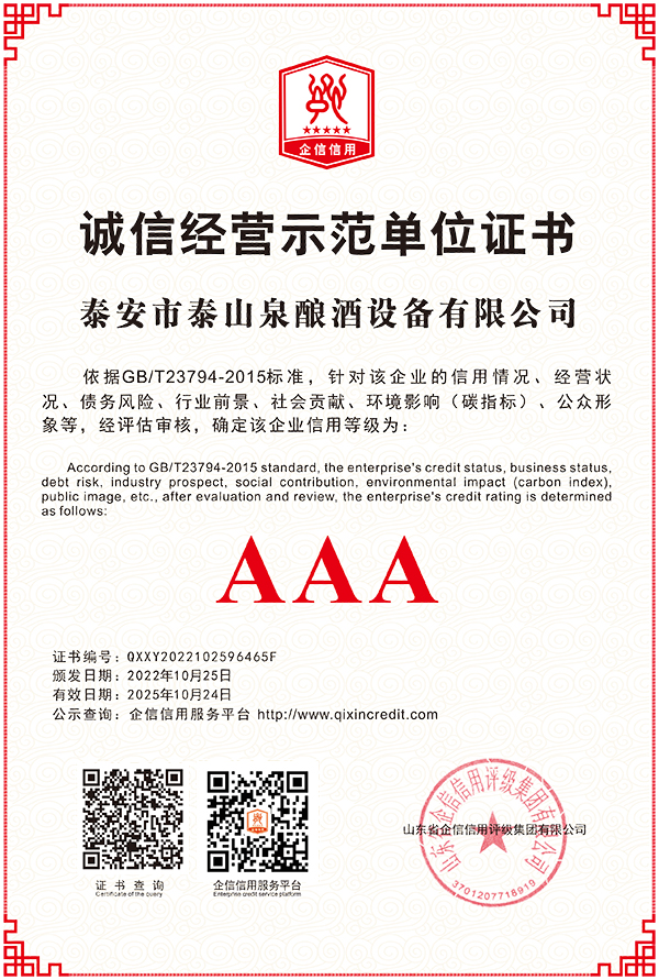 誠信經營示范單位證書